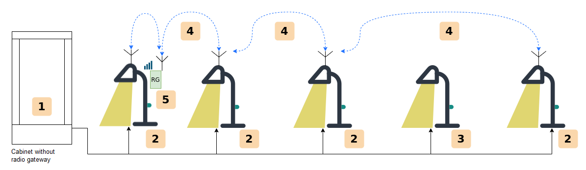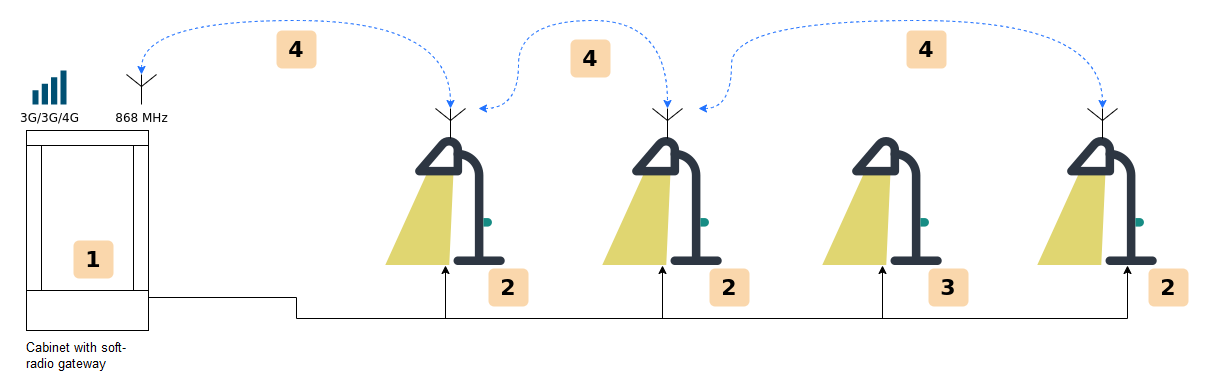 A group of luminaries within one radio network, can be served by several radio gateways. One of the radio gateways is the main one, the others are backup. Regular rotation of the roles of radio gateways allows you to proportionally consume mobile traffic on all SIM cards.