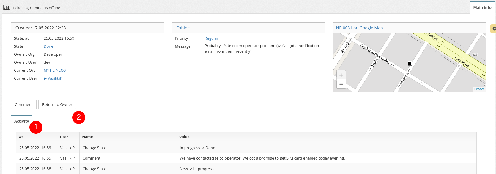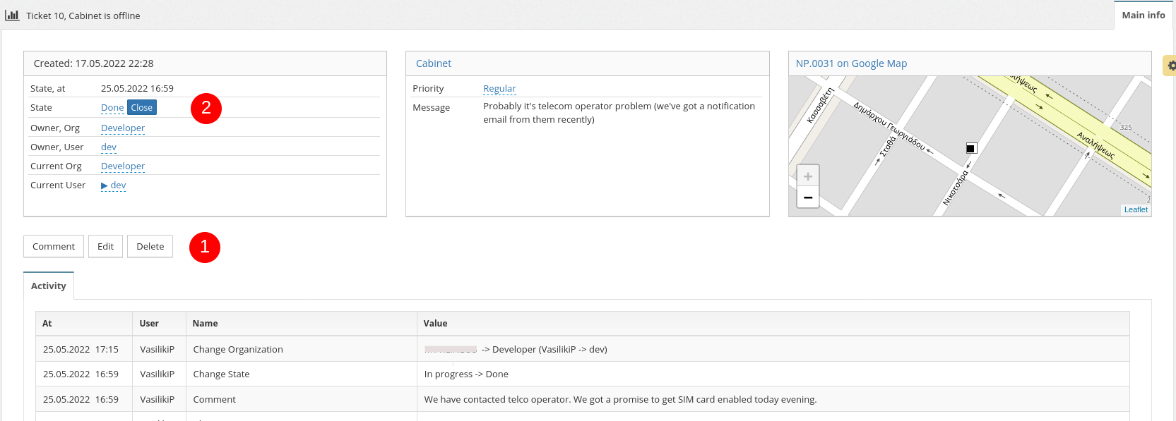 A ticket is a digital representation of registered incident. Incident management is the process of finding problems in street lighting or equipment. Created once, a ticket can be handled by responsible user, or transferred to another user or organization.