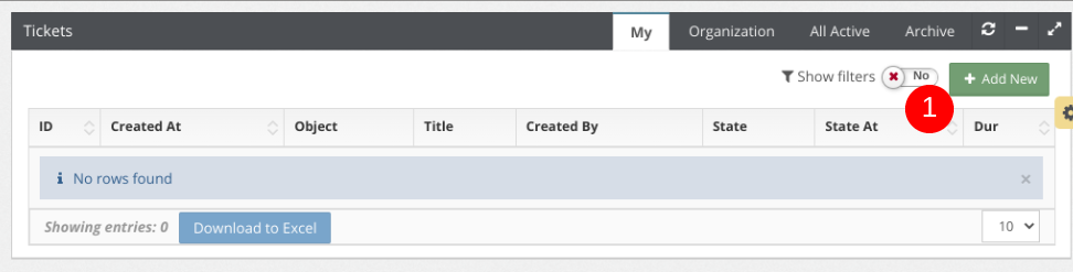 - Organization: active tickets assigned to the users from organization to which logged in user belongs.