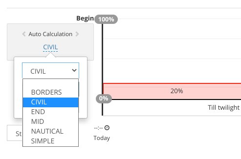 Click to the drop down list to get visible all supported twilights.
