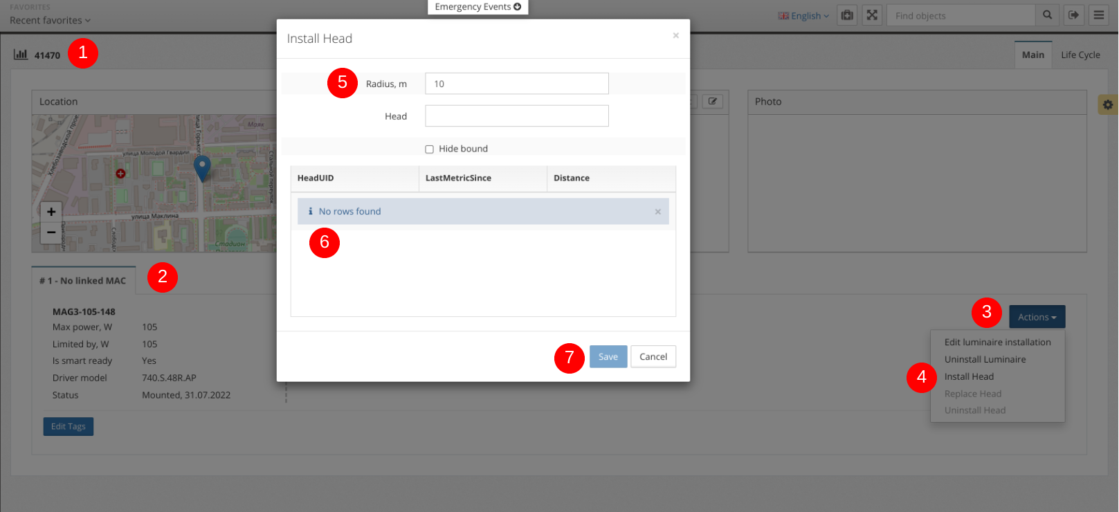 - In the section with isntalled luminaires, choose tab with title “No linked MAC”.