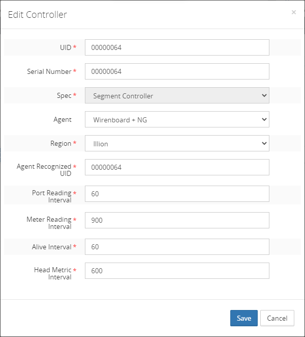 The appearance of the modal window for entering controller characteristics is similar to the edit window (see below).