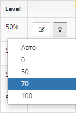 When you click on the dimming level button, commands for setting the current power level are sent to the head of the luminaires that satisfy the selected labels. The modal window is closed.