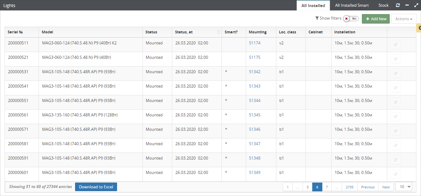 - Creation of a luminaire is performed by clicking on the + Add New button;