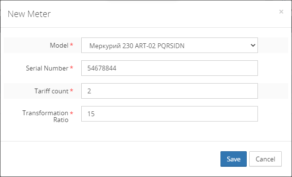 The appearance of the modal window for changing the meter characteristics is similar to the creation window (see above).