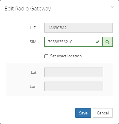 | Created | Date of creation (automatic registration) of the radio gateway in the system |