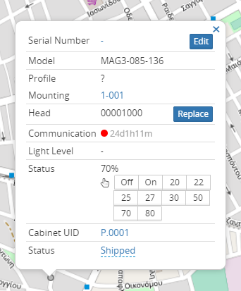 Press the Luminaires button to switch to the view of the luminaires on the map.