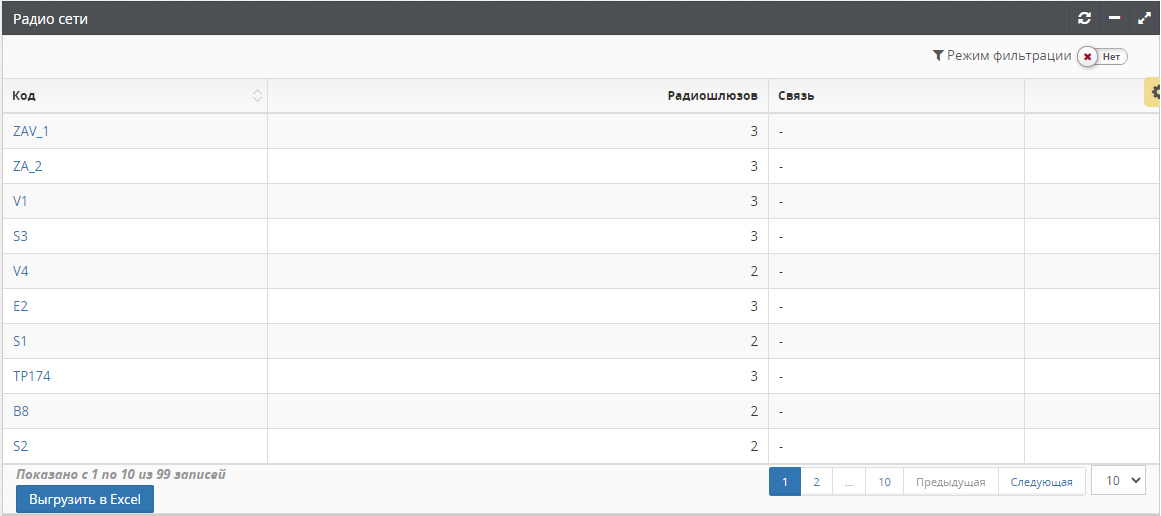 Код Уникальный идентификатор радио сети. Задается инженером при проектировании радио сети.
