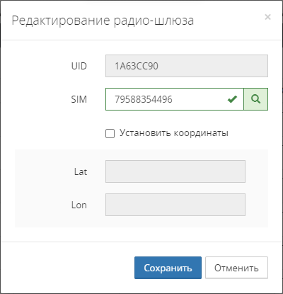 • Редактирование радио шлюза выполняется по клику на иконку Карандаш;