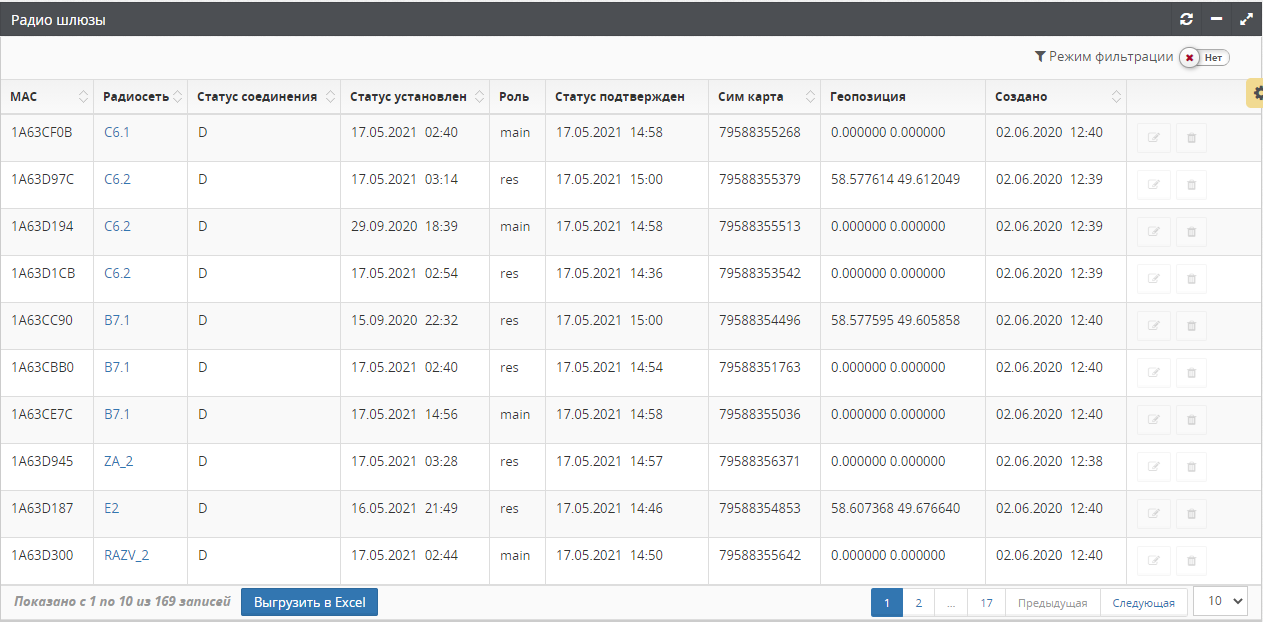 Радиошлюзы регистрируется в системе автоматически по мере обнаружения в радиосети. Поэтому, обратите внимание на подробное описание действий на странице актуализация характеристик радиошлюза.