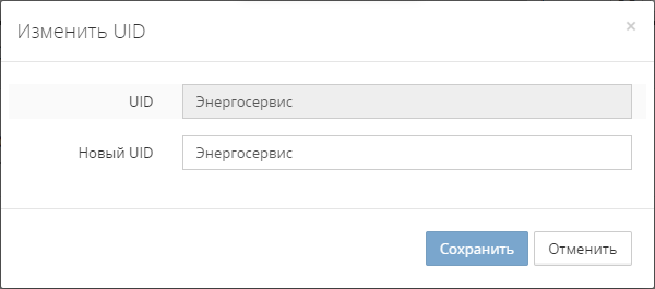 Изменение UID выполняется заданием нового UID политики в модальном окне Изменить UID