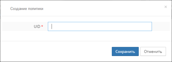 Создание политики выполняется вводом UID в модальном окне создания политики