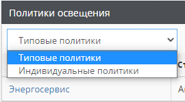 - Фильтрация политики выполняется по клику в элемент выпадающего списка