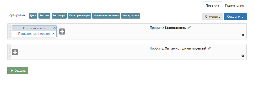 Сортировка (порядок добавления модификаторов) определяет приоритет обработки модификатора правила.