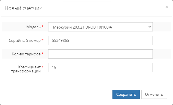 Внешний вид модального окна изменения характеристик счетчика, аналогичен окну создания (см. выше).