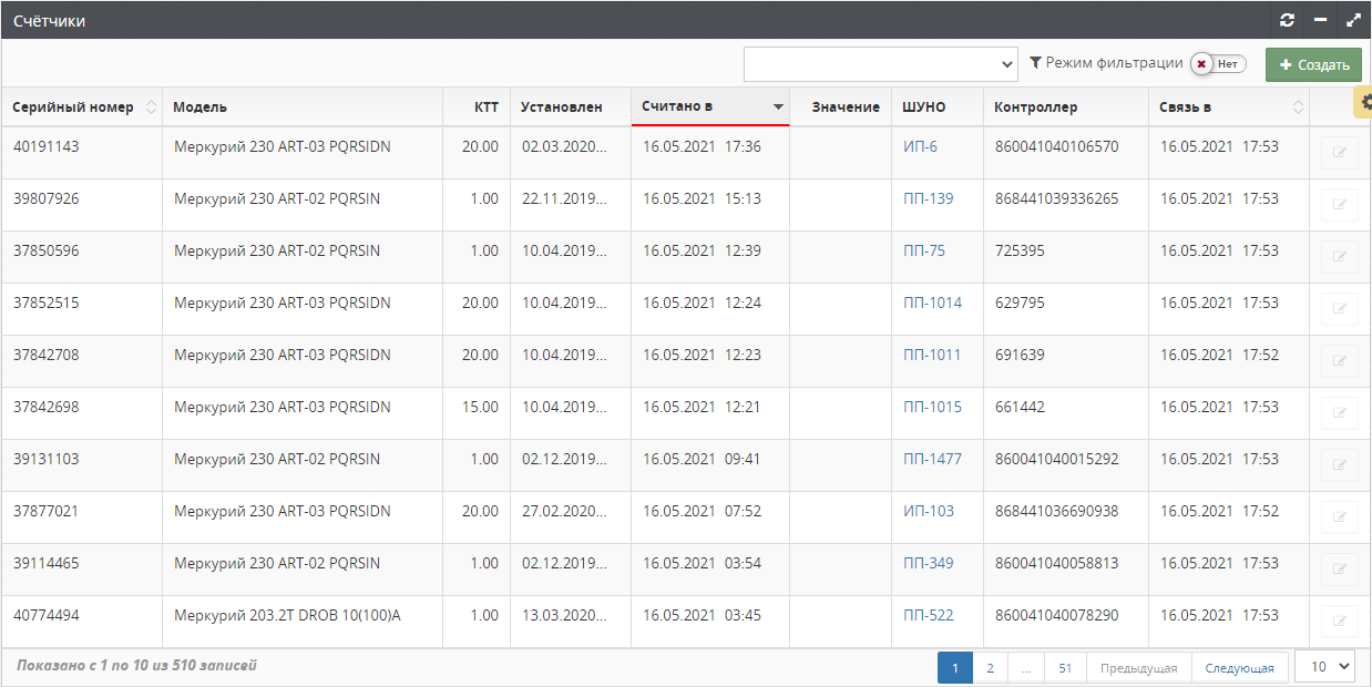 | Контроллер | Контроллер ШУНО, к которому подключен счетчик |